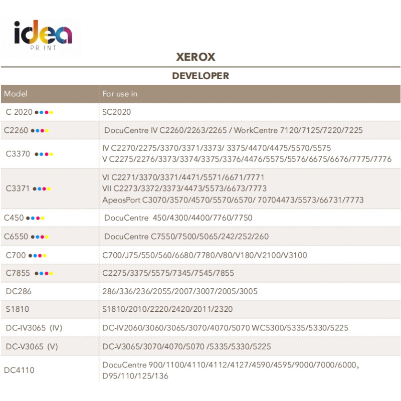 For Xerox series Developer, 100%compatible & High quality.