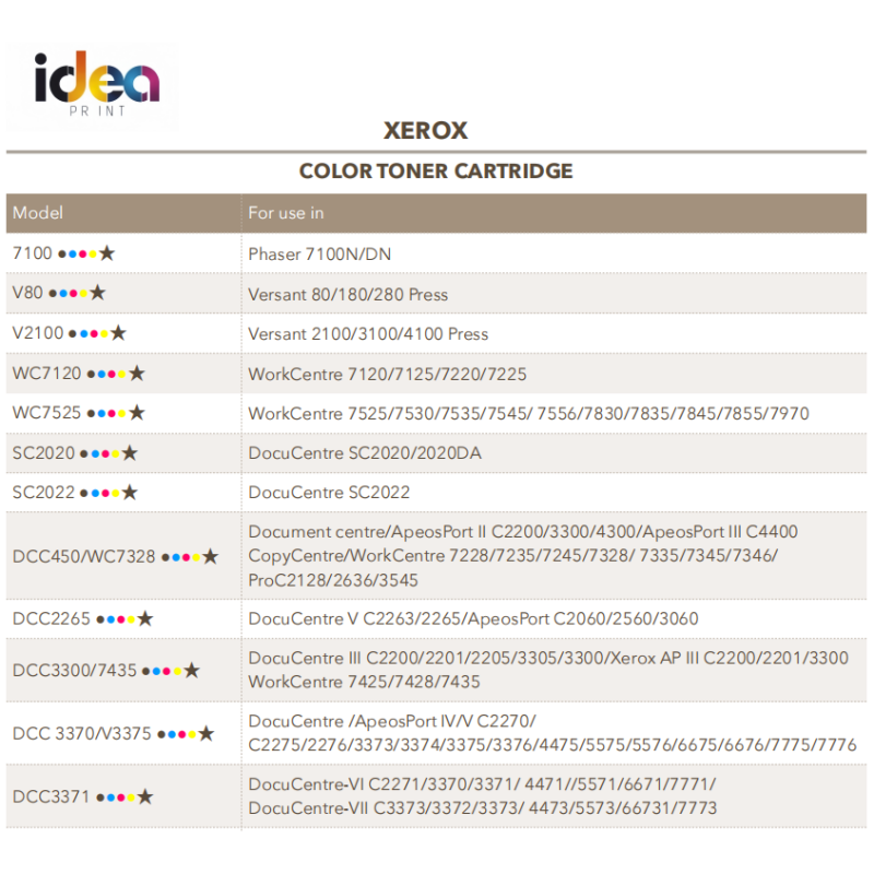 Toner cartridges for all models in the Xerox series are available.  OEM quality and high page yield.